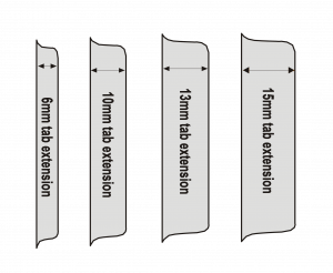 Tab sizes are measured by length and depth, our tab cutting operation is performed using adjustable tab knives that can cut any desirable tab length